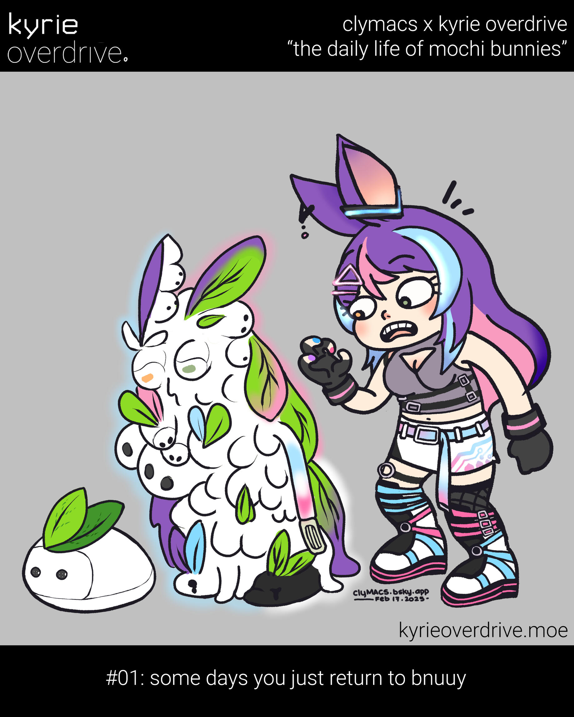 Teaming up with artist Clymacs, Kyrie Overdrive is bringing a lore based single panel comic on the lives of Kyrie Overdrive and her mochi bunnies as they navigate through the strange, wonderful and sometimes bizarre thing that is the Internet.